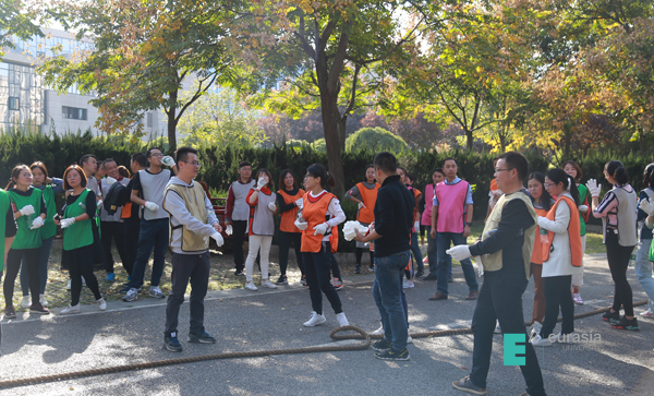 分组比赛结束后,老师按照两个工作单位分开,人居环境学院老师和馨迪公司员工进行拔河友谊赛。呐喊声、欢呼声,久久地飘荡在校园。所有人像快乐的孩子,在快乐的游戏中释放压力、舒展身心。