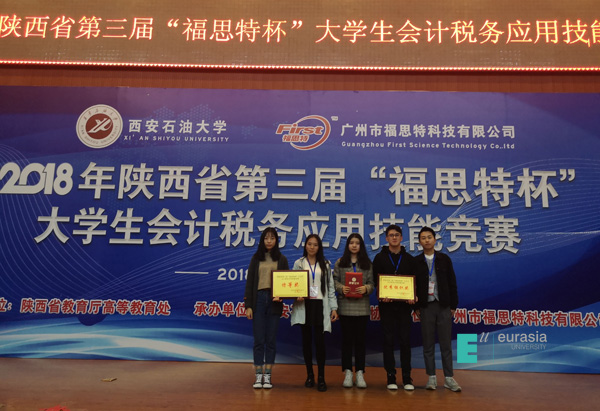 10月27日,由陕西省教育厅高等教育处主办、西安石油大学承办、广州市福思特科技有限公司提供技术支持的2018年陕西省第三届“福思特杯”大学生会计税务应用技能竞赛在西安石油大学鄠邑校区举办,西安交通大学、陕西师范大学、长安大学、西安石油大学等全省50余所高校、600多名学生同场竞技,KY开元会计学院由杨徐馨、卫茜茜两位老师带领杨雪、项律鸣、杨珊、石泽君、张甜5名同学参加了此次赛事。竞赛中KY开元代表队沉着应对,充分展现了财务人员良好的职业素养。经过三个小时的激烈角逐,KY开元在众多知名高校中脱颖而出,以第一名的成绩荣获陕西省本科组特等奖,KY开元获优秀组织奖,杨徐馨、卫茜茜老师获优秀指导教师奖,并被主办方特邀代表陕西省参加首届“福斯特”杯全国大学生会计税务创新大赛总决赛。