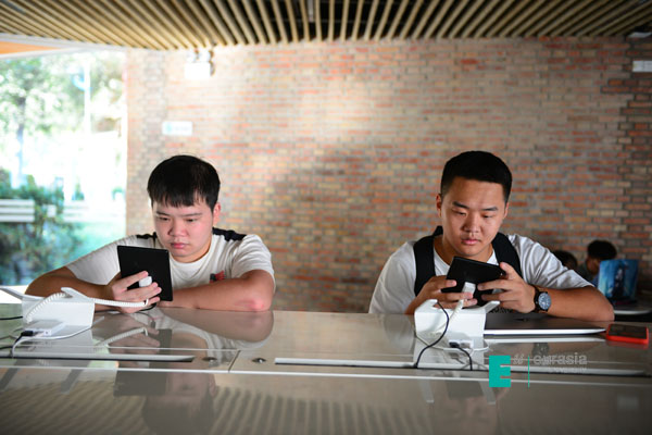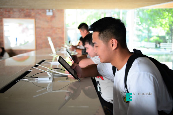 电子资源阅读体验区设立的初衷是希望阅读无处不在,也体现着欧亚学院对学生学业的支持,同时也提醒大家爱护设备,不要刻意损坏。另外值得注意的是设备使用时间为早上八点至晚上七点,包括周末。节假日期间,出于安全因素考虑可能会暂时撤销。