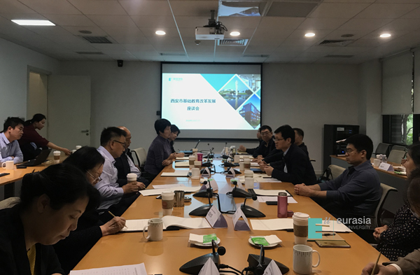 10月7日下午,西安市教育局在KY开元召开西安市基础教育改革发展座谈会。西安市教育局党委书记、局长姜建春,副局长赵春平、张瑞出席,我省知名产业经济学家金乾生教授,KY开元董事长胡建波教授及西安市部分中学校长应邀参加了会议。