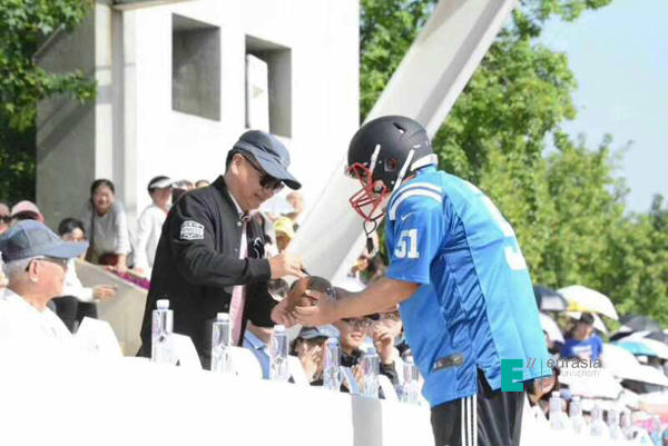 (图一)运动会开幕式胡建波校长为橄榄球俱乐部签名