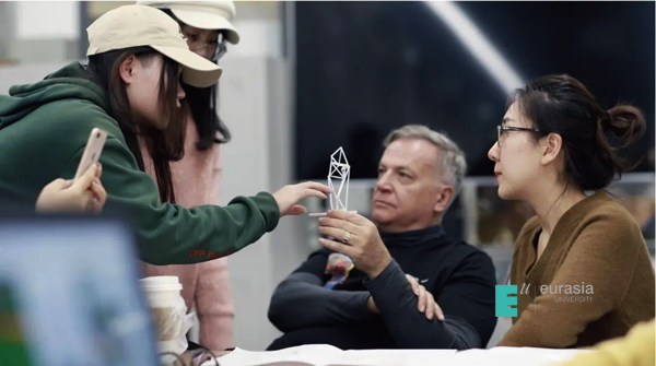 Tony Brown在作为学院国际学术顾问期间,一直关注并指导学院在学科发展上的未来洞察,曾多次与分院展开深层次、跨领域的互动与合作:出席并担任KY开元2019年「University-maker——设计领域的教育行动」论坛重要嘉宾、与当代艺术家隋建国在学院举办「雕塑的手和绘画机器人创造的神秘意外」双个展、带领艾德艺术设计学院跨领域实验班学生进行公共雕塑工作坊,并在此期间为欧亚学院校园创作、落成新的公共雕塑作品。