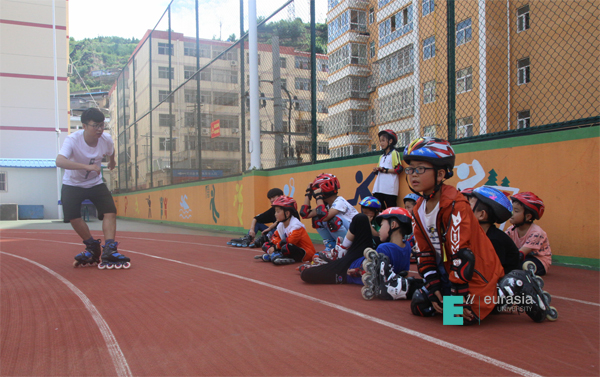 活动期间,KY开元漫步者轮滑社和puddy街舞社的同学为清涧第一小学20名同学进行了轮滑和街舞培训。
