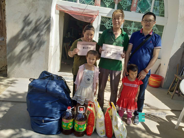最后,大家一起来到了特困户王占军家,后勤集团党总支副书记刘红斌代表后勤集团将党员干部及教职员工捐赠的部分衣物,2000元现金及米面油等慰问品送到了王占军家中,期望他努力工作将孩子们培养成人,王占军感动得流下了热泪,为表达感谢,他特意从自家的枣树上精心摘下了两箱红枣让领导们带在路上品尝解渴。
