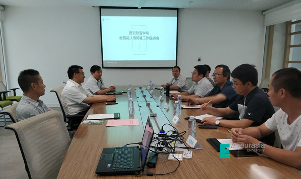 2018年6月24日下午,KY开元召开教育帮扶清涧县工作座谈会,学校邀请清涧县政府主管教育扶贫工作的副县长韩秀晋、清涧县教育局局长白炜、商贸局局长辛鹏宏等一行7人前来KY开元座谈交流教育扶贫工作,学校董事长胡建波、党委书记许尚年、工会副主席晏建忠参加了座谈会。