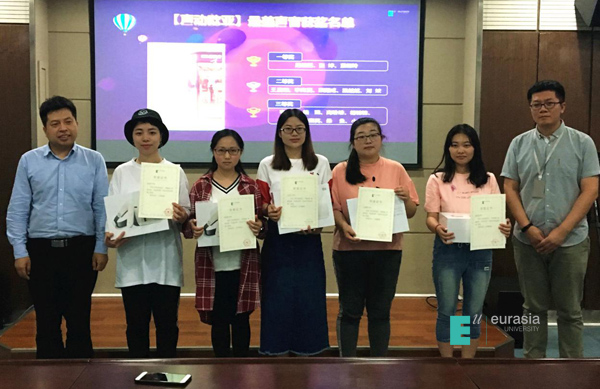 在”声动欧亚”享读经典活动中,悦读世界活动从片段征集、片段初选投票、片段音频转换到最美声音评选,共有1000余名同学参与,本次共有18位同学获得奖项,图文中心副主任罗老师和读者服务部孙老师同台颁奖,赢得大家热烈的掌声。获得第一名的易绍新代表获奖选手发言,他从文章写作浅谈到了对读书的理解,正如他说的:书籍给我的就像是另一个世界,我脚不能到达的地方,它带着我的灵魂领略,让我们更深刻的理解了读书的意义。