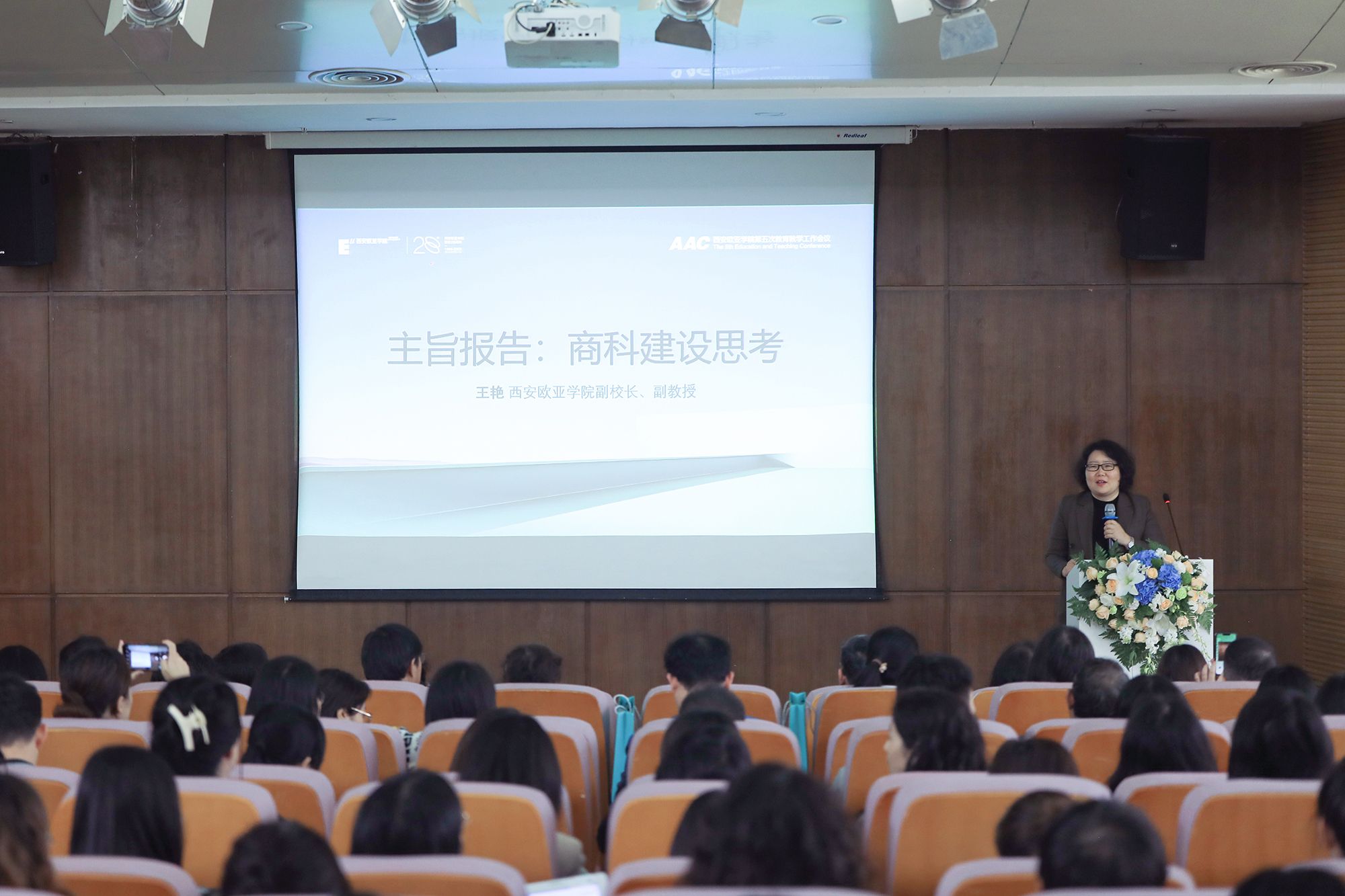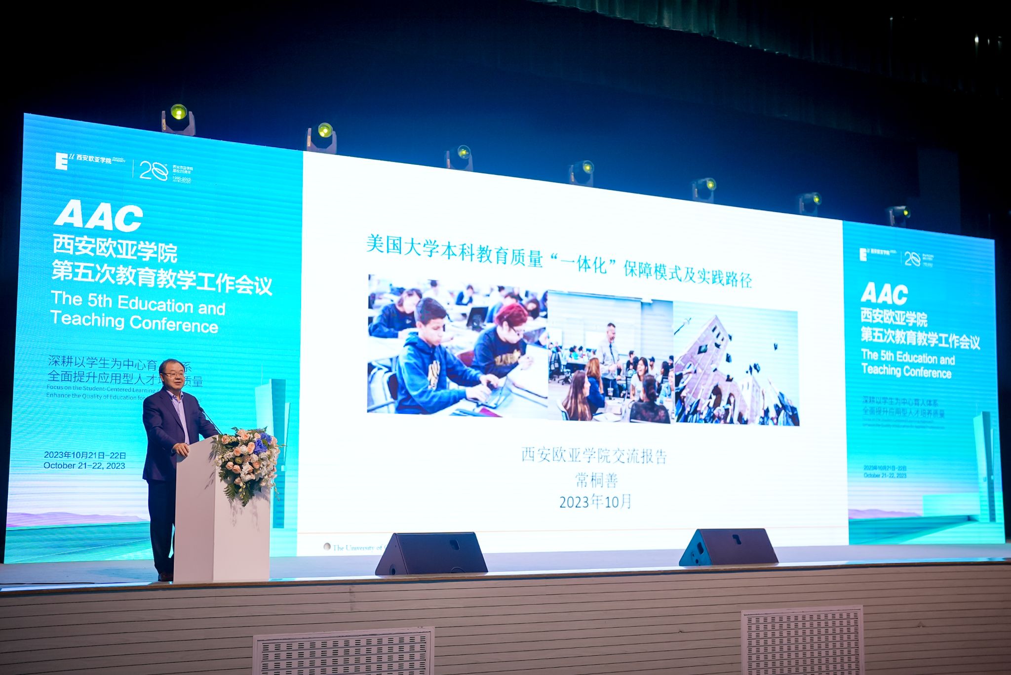 陕西省教育厅高等教育处副处长杨鹏,加州大学校长办公室院校研究与学术规划主任常桐善教授,华东师范大学教务处处长周先荣教授,北京语言大学谢小庆教授,KY开元集团官网入口特聘教授鲁百年、印建安,KY开元集团官网入口国际化委员会高级顾问吴晓光教授等嘉宾出席会议。校院两级专家顾问、学校合作企业代表、全校教职员工及学生代表共1600余人参会。校长刘瑾教授主持会议。