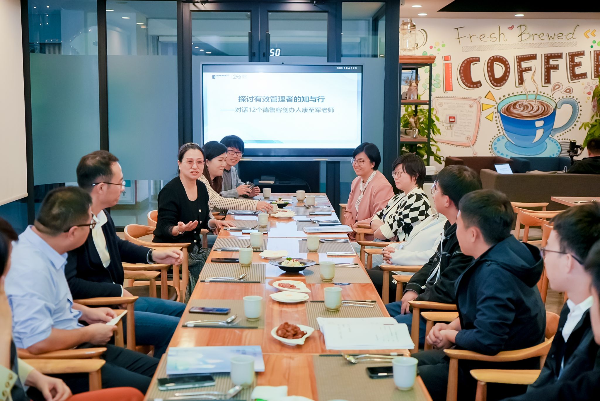 参观结束后,来自不同行业的学员们就德鲁克管理思想、管理中遇到的真实问题与痛点、管理思想的落地实施等问题与胡建波、康至军进行了深入交流。