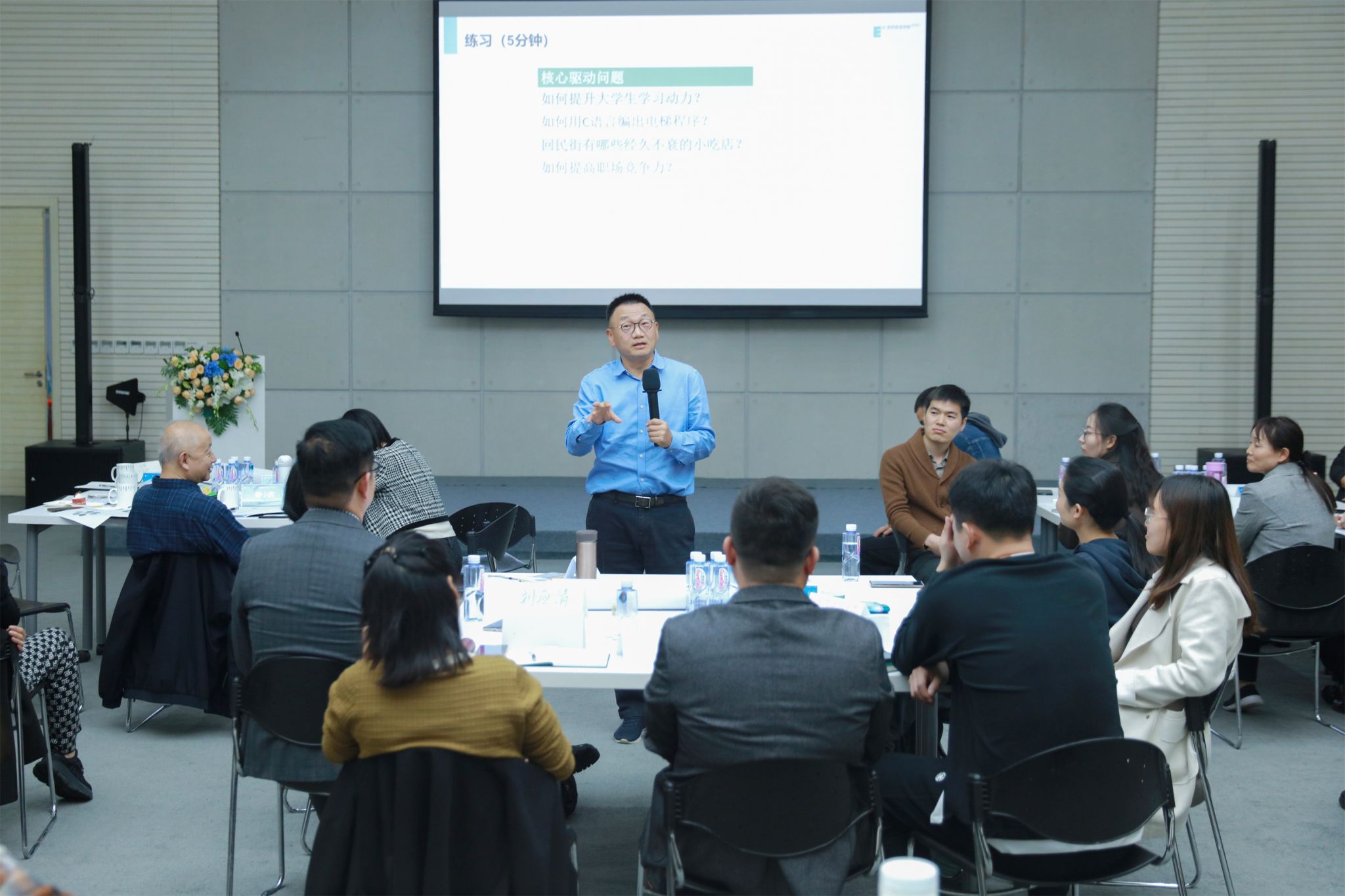 邢江姹老师向与会老师介绍了PBL项目式教学的具体应用流程,让老师们收悉、学会、应用PBL项目式教学方法。大家通过分组讨论,结合她给出的具体案例,熟悉了核心驱动问题的关键标准,即是否是意义非凡的、可讨论的、符合教学目标的、挑战性的、真实的、开放性的。接下来,各小组开始就“核心通识能力培养如何在专业和基础课上落地”这一问题,进行PBL项目式教学方法的尝试。首先,各组结合本组成员的专业背景,依据核心驱动问题的标准,开始设计相应的核心驱动问题;然后根据核心驱动问题,把问题进行分解,制定出具有可操作性的具体方法。在座老师们讨论激烈,参与度非常高,制定出诸如“如何在欧亚经营一家失恋博物馆”、“如何把思政元素融入到高数课程”等教学项目。