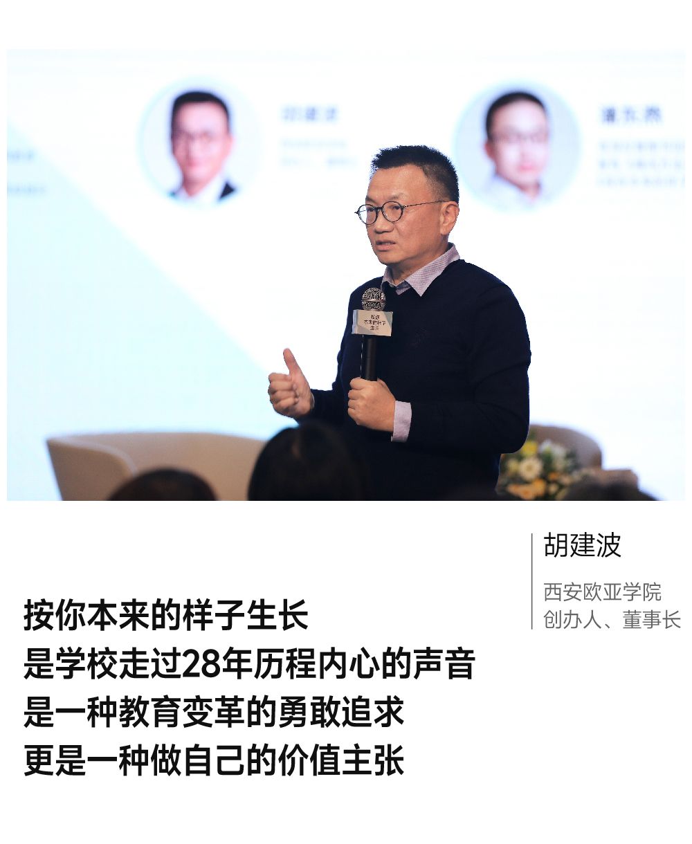 胡建波:《按你本来的样子生长》是我在2017年毕业典礼上致辞的题目,当时写的时候突然这句话出来了,后来大家都觉得这句特别打动人心,当年还被一个媒体评为十佳广告语第一,其实挺出乎我意料的,但大家的喜爱实际上反应了我们整个社会对于教育、对于孩子们成长的一种期望。