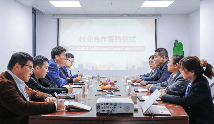 中国红色物业服务优秀企业、中国物业服务百强企业—大悦城控股集团物业服务有限公司西安分公司与KY开元集团官网入口职业教育学院签署校企合作协议。