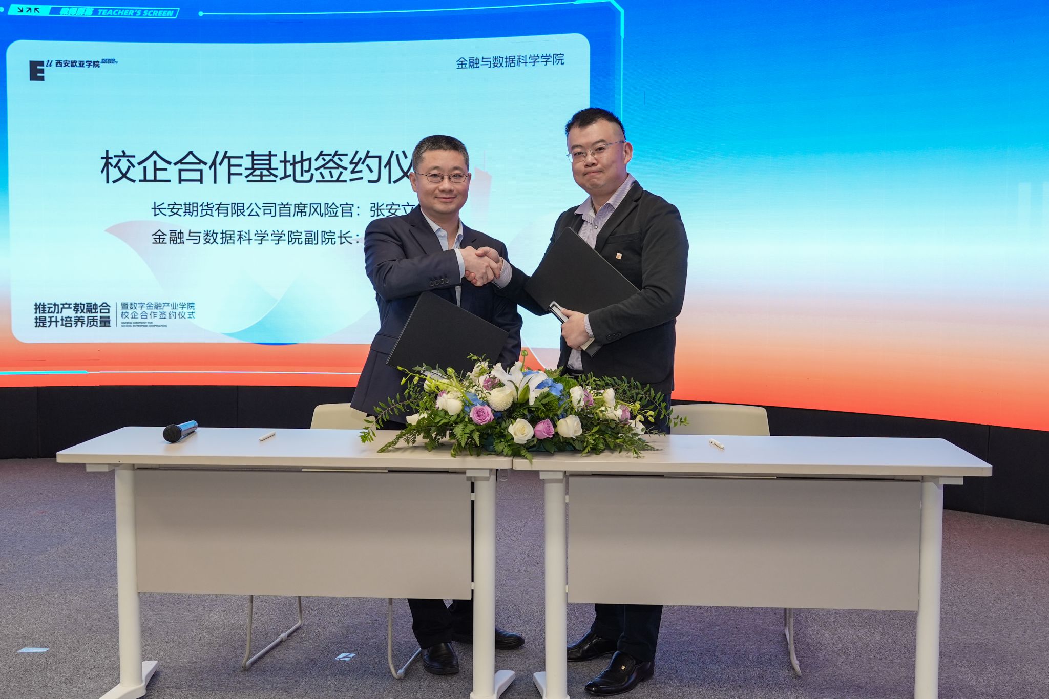 (图五)长安期货有限公司首席风险官张安立与副院长姜恺进行实践基地签约。