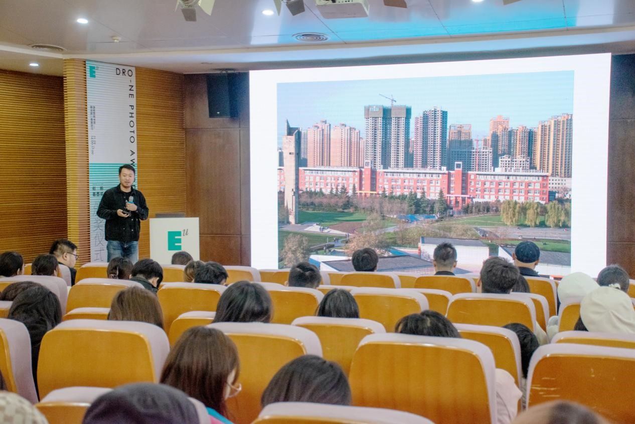 最佳创新奖获得者刘睿以“保持热爱 共赴山海”为主题,分享了他的拍摄经验以及航拍实用的小技巧。此外,现场还颁发出了二等奖3个、三等奖5个、最佳创新奖、最佳运镜奖、最佳摄影奖、最佳调色奖等11个奖项。