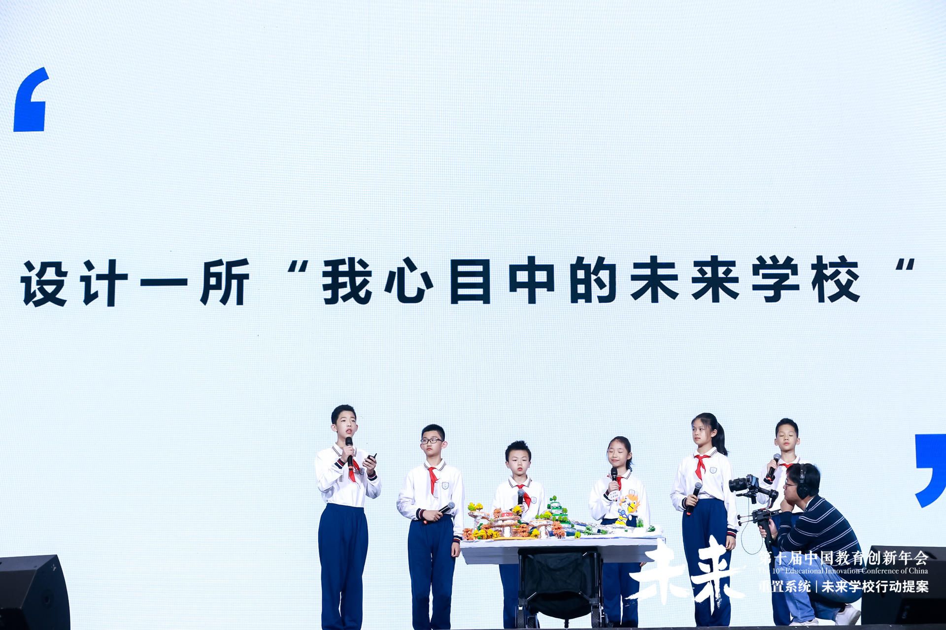 在学生现场学习环节,四所学校学生现场实践项目式学习,以任务驱动、同步学习、成果展示的方式,畅想他们心目中的未来学校,给出了属于他们自己的“未来学校行动提案”。