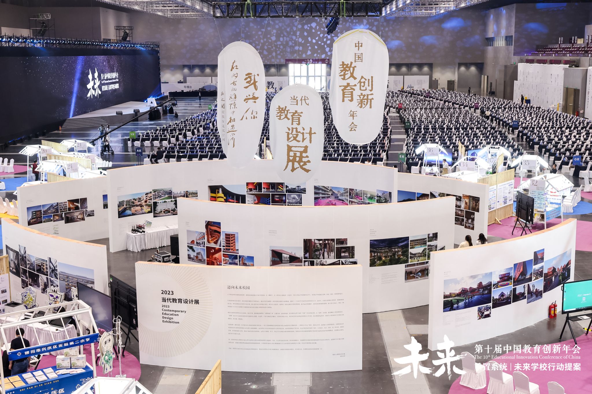 “百年长河”文明展、“大先生展”等从不同向度再现了历史上有关教育的重要时刻,年会现场中庭的“当代教育设计展”及四周环绕的“教育人生活美学路线图”则将教育视野接续至美育的维度。本次年会还首创“自主创新产品市集”,来自深圳、北京、重庆、山东、四川等多个省市的56所学校,呈现了一场属于创新学校的创造性生成。