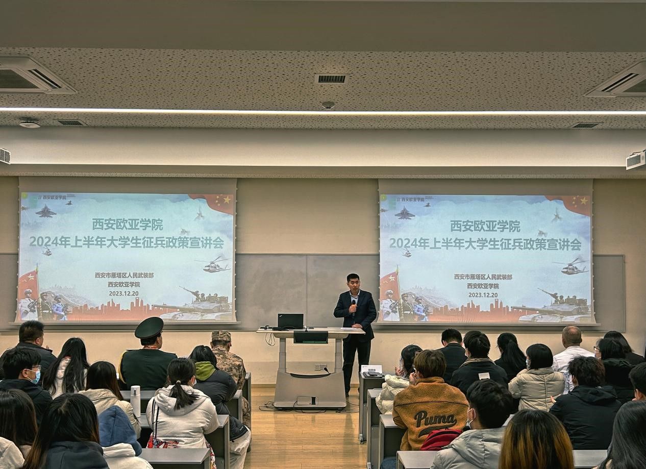 会上,李刚政委围绕征集条件、参军优待政策、西安市参军八大优势等方面内容解读2024年征兵政策,重点从政治荣誉、学业保障、经济优待、就业保障、成长进步、大学生参军入伍优势六个方面进行政策讲解。李刚政委为在座的同学讲述了报名参军的基本条件、2024年雁塔区参军入伍优待政策,也同时进行了各类热点问题的解答。