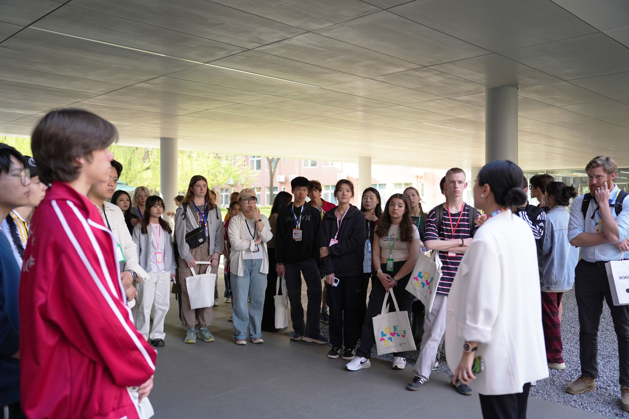 在南区学生客厅、图书馆和设计博物馆等地,江翡向学生们介绍了欧亚校园的建筑风格、教学设施和文化活动,带大家体验欧亚国际化教育的魅力和“以学生为中心”的开放学习氛围。美国中学生和人文教育学院的志愿者同学们结伴而行,彼此分享着各自的学习经历和校园体验,互相了解对方的文化背景和生活习惯。