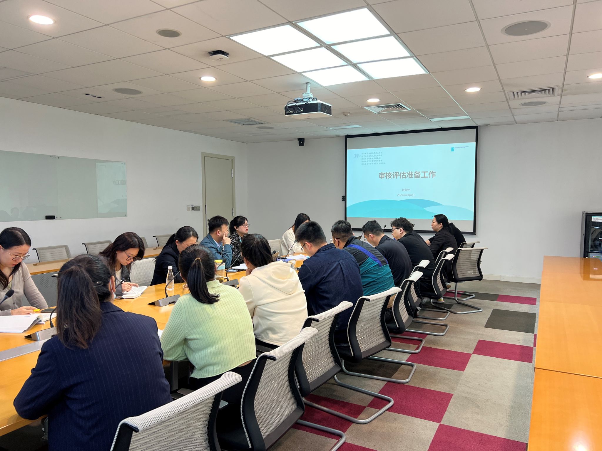 2024年4月9日,教务处在学校行政中心一楼东会议室召开审核评估工作专题会议,会议由教务处处长张娜主持,部门全体员工参加了本次会议。