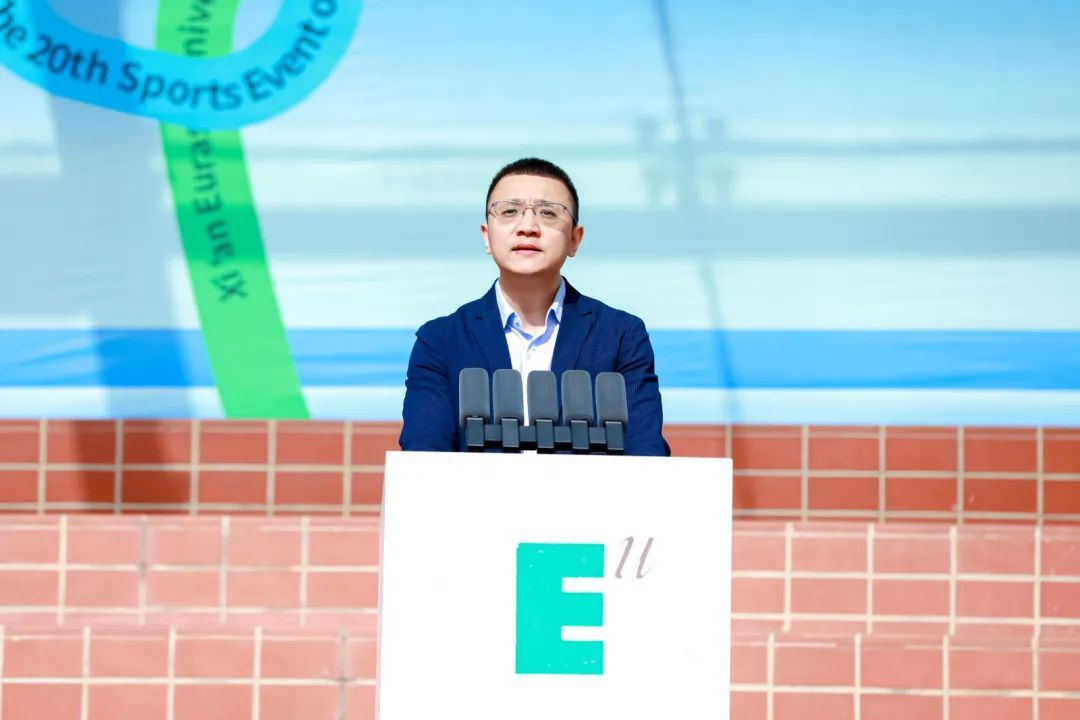 董事长胡建波教授为运动会的开幕式发表致辞。他指出:“我们希望通过体育运动进行育人,培养同学们的兴趣爱好、坚韧品质、团队精神和积极态度。为此,学校新建了西区文体中心,融合体育训练、教学、科研、社会服务等多种功能于一身,建筑面积1万5千余平方米,地上及地下各2层,包含篮球馆、游泳馆,跆拳道、乒乓球、体育舞蹈、骑行、体质测试、健康理疗等空间,可以满足师生的不同运动需求。”