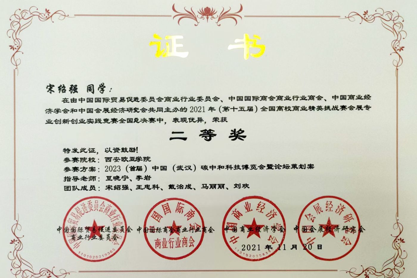 撰写策划、拍摄活动、参与项目……会展工作室的丰富经历,以及对专业知识的系统性学习,让宋绍强对会展策划及运营的逻辑思维更加清晰。大二时,他和同学们再次组队参加全国商业精英挑战赛会展专业创新创业实践竞赛,他们的策划方案“智慧‘中和’ ‘碳’寻未来——2023首届中国武汉碳中和科技博览会暨论坛”荣获二等奖。“在做项目和参与比赛的过程中,会面临许多意想不到的挑战,比如各个部门之间的协调、场地的布置、活动的匹配度,这些问题处理起来都会比我想象的更加琐碎。”宋绍强对会展行业的理解也逐渐变得具象。