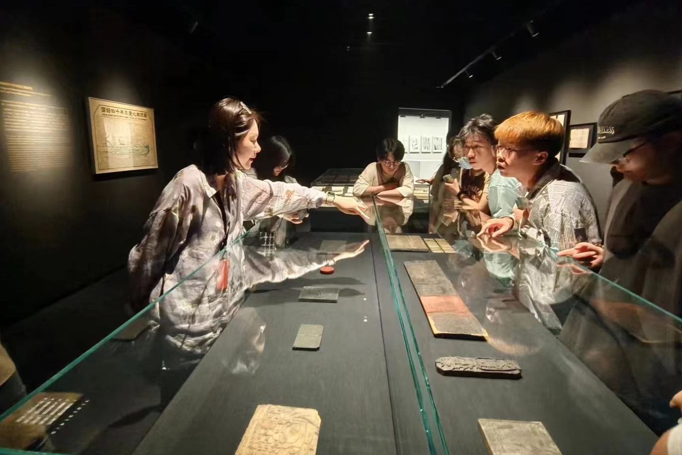 “我们的社会今天能如此发展,正是在前人的脚印下一步一步走过来的,而造纸术和印刷术的发明确实是中国人对世界文明作出的重大贡献。”5月17日,在设计博物馆中国馆,20余位欧亚师生和市民朋友驻足停步于唐宋卷纸印本间,听党晟先生娓娓道来印刷术的历史脉络与发展进程。此时此刻,透过古拙遒劲的文字与浑朴精美的图画,字纸间的意蕴美学尽数显现。