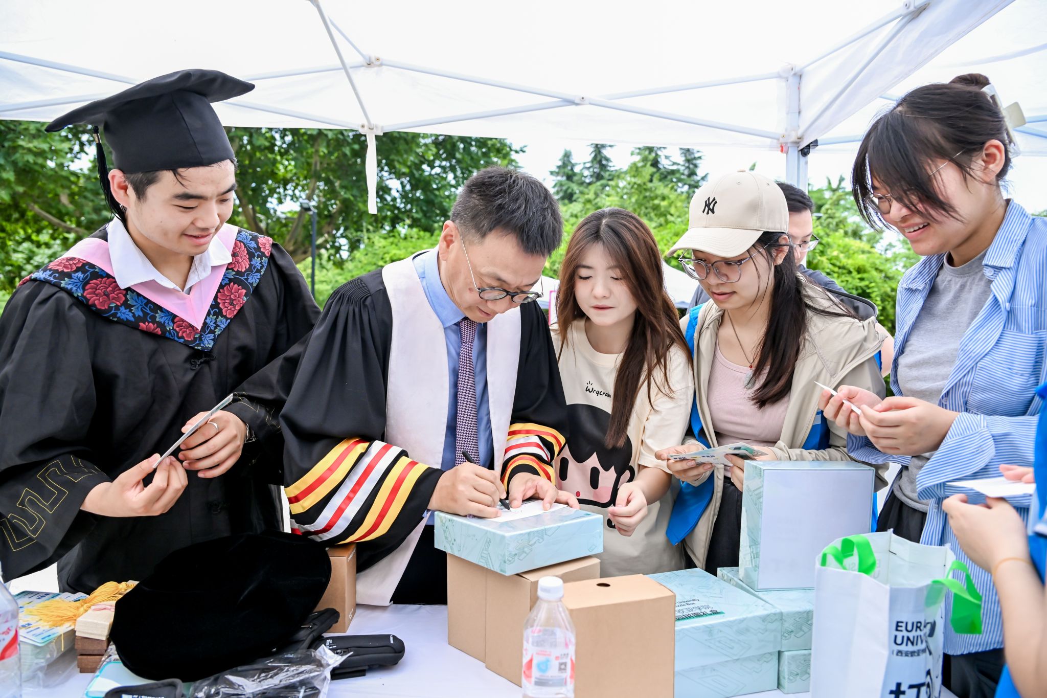 (图十二)胡建波教授为毕业生签名留念
