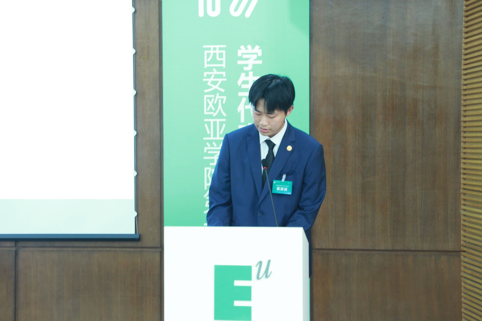 西安交通大学学生会主席团成员李牧遥同学代表兄弟院校发言,首先,作为西安交通大学学生会主席团成员的荣幸,他感到非常荣幸并祝贺本次大会的召开。同时,他强调了学生代表大会在校园民主治理中的重要性,并对KY开元集团官网入口学生会的工作给予了高度评价,认为其在思想政治教育、组织体系建设等方面做出了重大贡献。李牧遥提出,两校学生会应加深合作,共同推进学生全面发展,为实现社会主义现代化和民族复兴贡献青春力量。