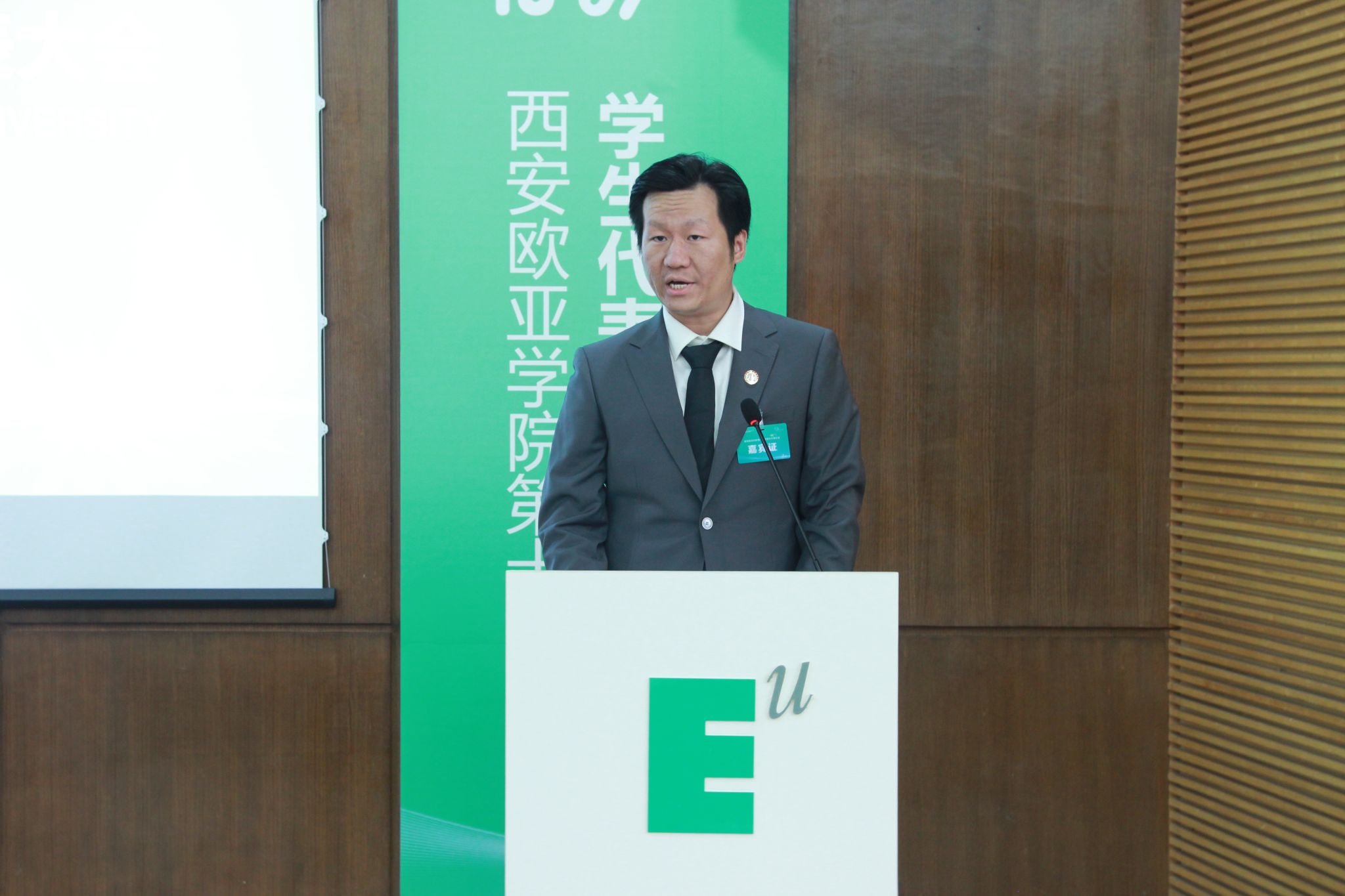 开幕式上,学生发展处副处长张成老师首先向与会领导、来宾、代表和同学们致以问候,并表达了对学校团学工作关心的领导的敬意以及对省学联同学和校内外嘉宾的欢迎。他强调了学生代表的先进性和代表性,呼吁他们以高度的责任感和政治热情参与会议,共同推动学校发展,实现"十四五"规划目标,为建设受尊重的私立大学和中华民族伟大复兴贡献力量。