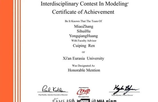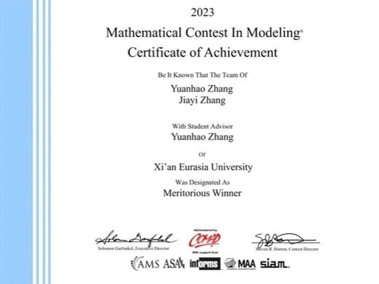 (图九)2023年美国大学生数模竞赛一等奖获奖证书