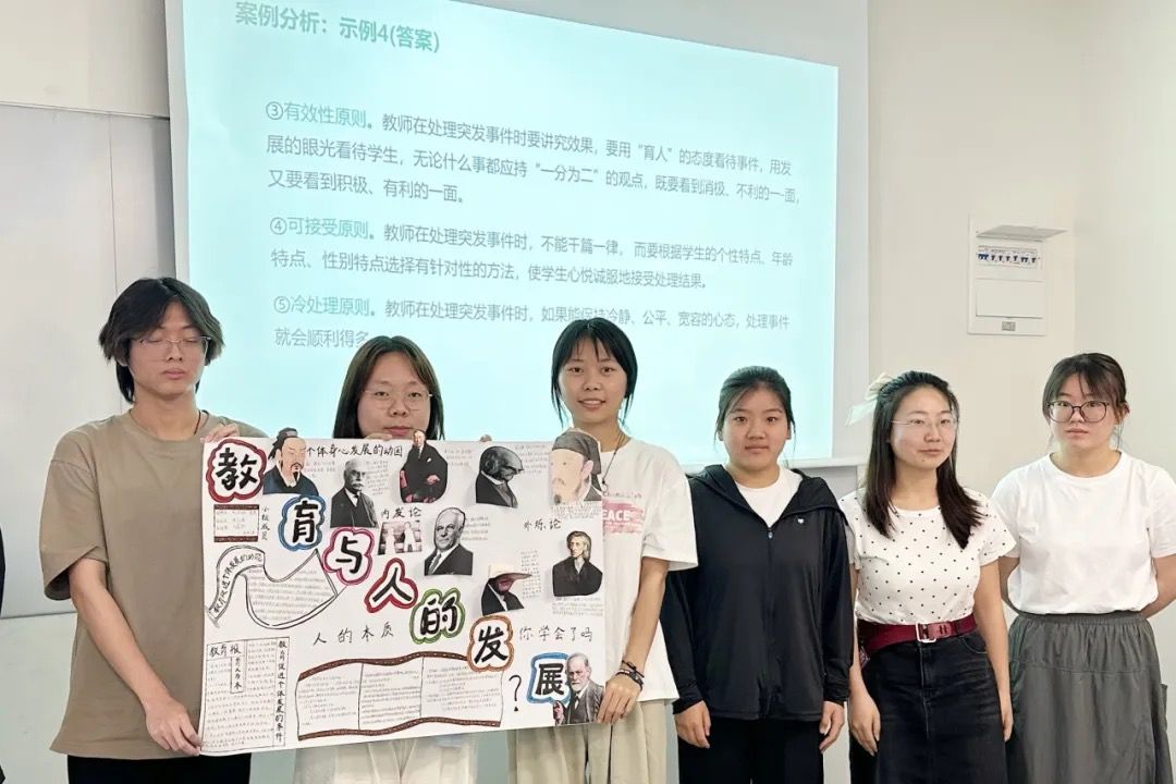 这门课程虽然看似晦涩,但也涉及部分哲学和心理学的内容。心态的变化和生活息息相关,也影响着未来的教育教学。周晓丹认为,老师和学生是平等的关系,生动鲜活的课堂更容易打开学生的心房。经常组织读书会、小组讨论及汇报,争取让每位学生都能参与其中,丰富多彩的师生互动,让学生们重塑认知,表达内心,用更加积极健康的方式看待自己,了解他人。
