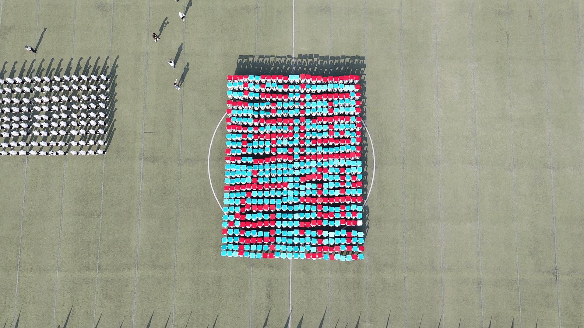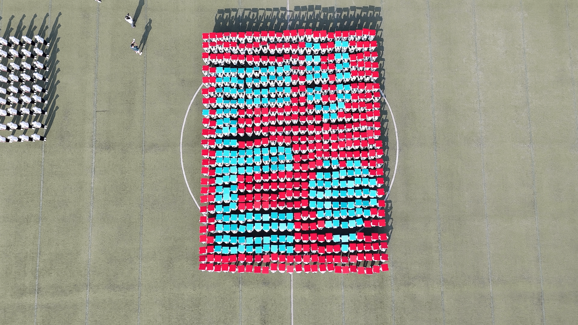 在蓝天的映衬下,同学们以整齐划一的队形,变换出“强国有我”“我爱欧亚”的字样,如同一幅生动的画卷,展现了新时代青年的责任与担当。他们的口号响彻云霄,如同激昂的战歌,激励着每一个人的心。