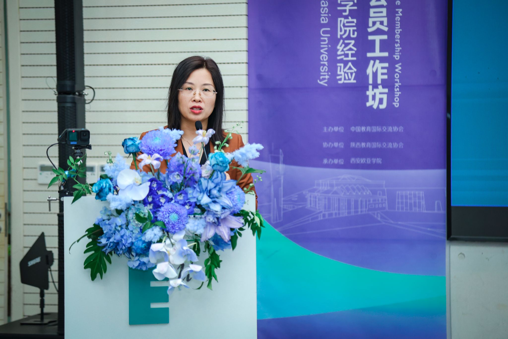赵国华在致欢迎辞时说,建校29年来,欧亚始终秉持“以学生为中心”的教育教学理念、“国际化、应用型、新体验”的质量内涵,在教育教学、信息化改革、专业认证等领域快速发展、健康成长。2022年,学校首个中外合作办学项目——软件工程专业本科教育项目顺利获批。这一切得益于省委教育工委和省教育厅的坚强领导和大力支持,以及兄弟院校和教育界同仁的携手共进和无私帮助。本次会员工作坊是中国教育国际交流协会贯彻落实全国教育大会关于深入推动教育对外开放部署要求的重要行动,他希望各位与会代表借此机会增进共识、开拓视野、推动合作,探索高等院校对外开放的新路径、新方式。