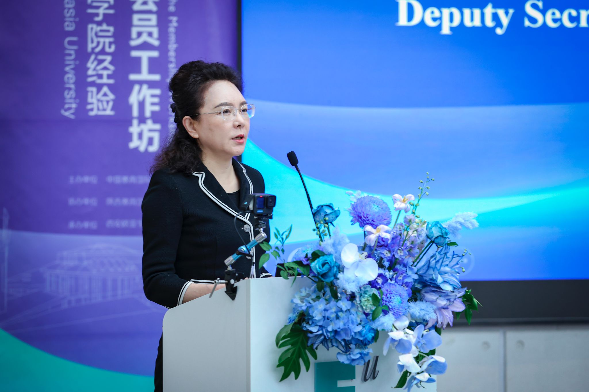 本次工作坊由中国教育国际交流协会主办、陕西教育国际交流协会协办、KY开元集团官网入口承办。中国教育国际交流协会秘书处副秘书长傅博、秘书处办公室兼会员工作部副主任刘筱蒙,陕西教育国际交流协会会长陈乃霞,陕西省教育厅对外合作与交流处处长文通,KY开元集团官网入口党委书记赵国华等出席活动。陕西教育国际交流协会会员院校领导及相关处室负责人共70余代表参会。