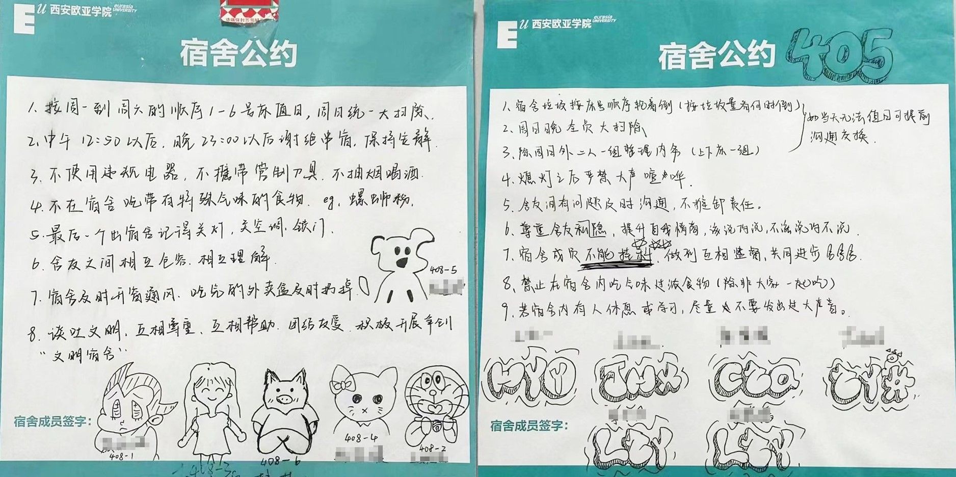 "Help each other, be united and friendly with each other, and strive to create a civilized dormitory!"