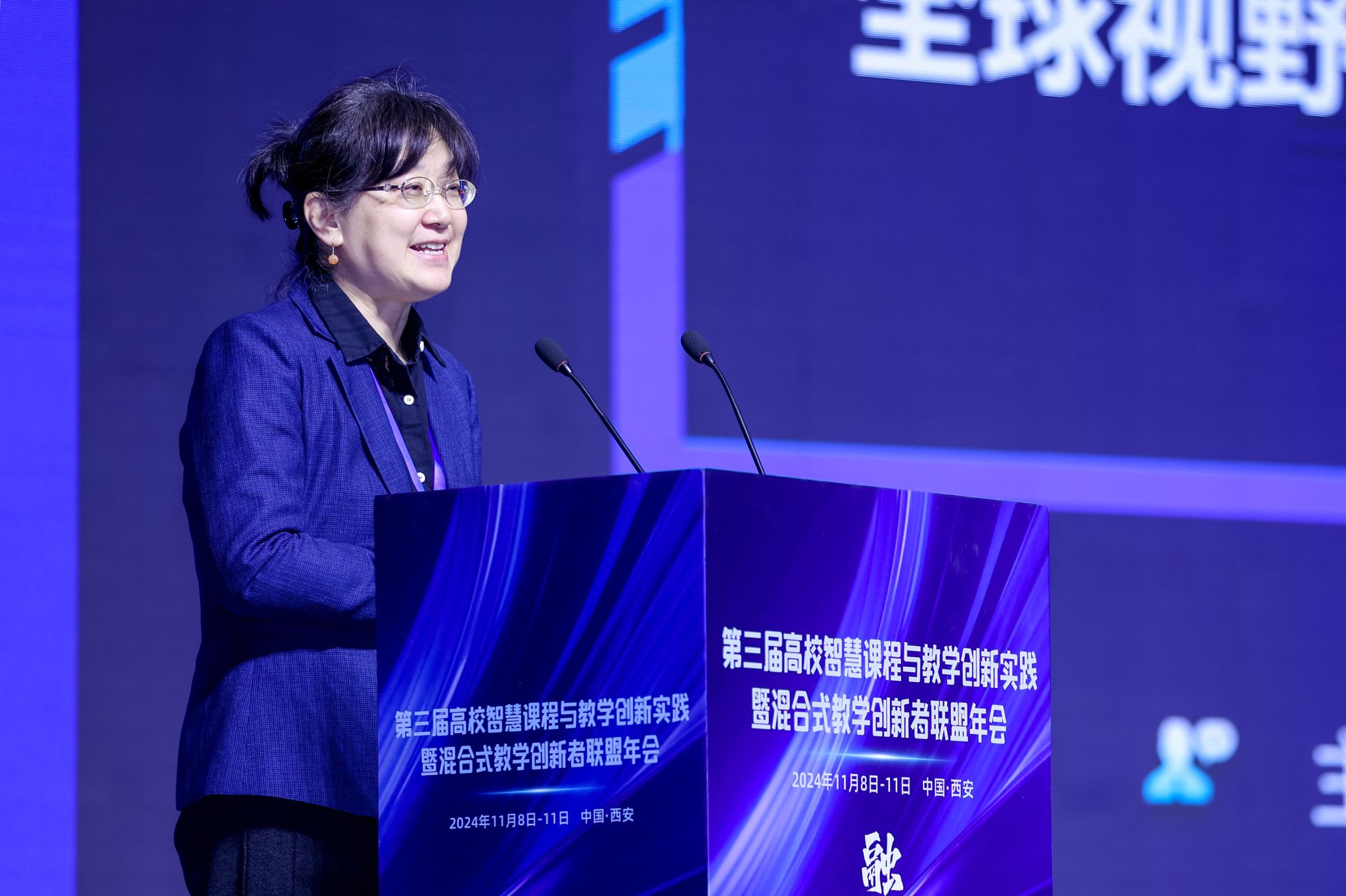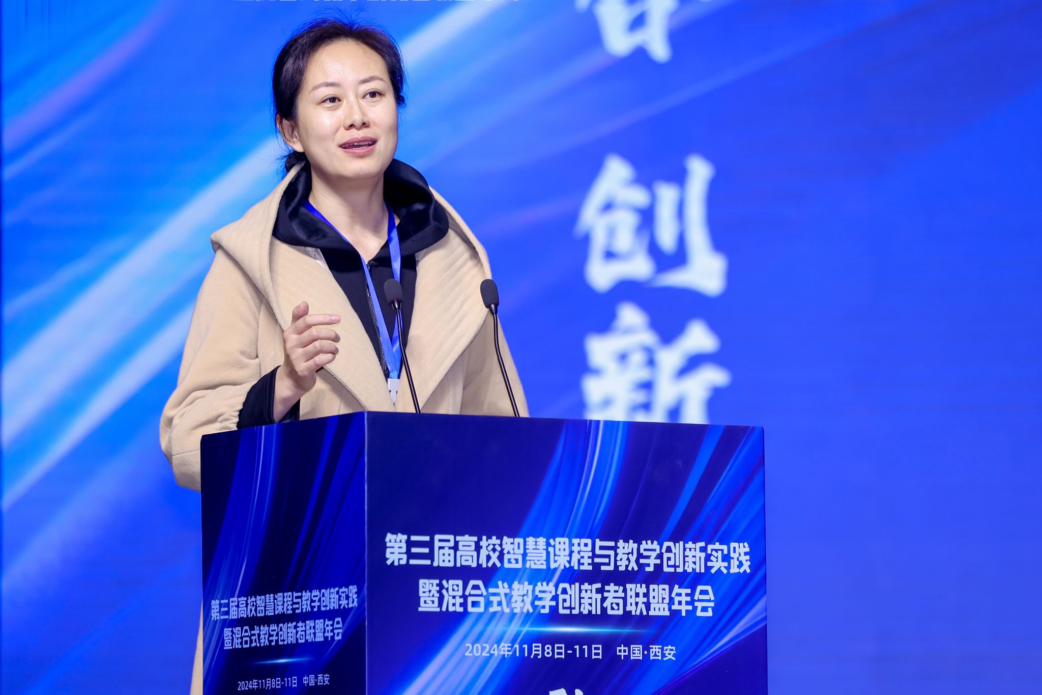 山东科技大学数学学院刘洪霞教授强调了数据和AI在教育领域的应用。她分享了线性代数课程的混合式教学经验,探讨了技术如何促进个性化学习与理工课程融合,以及课程思政在专业教育中的作用,跨课程教学与实际问题解决能力的培养。