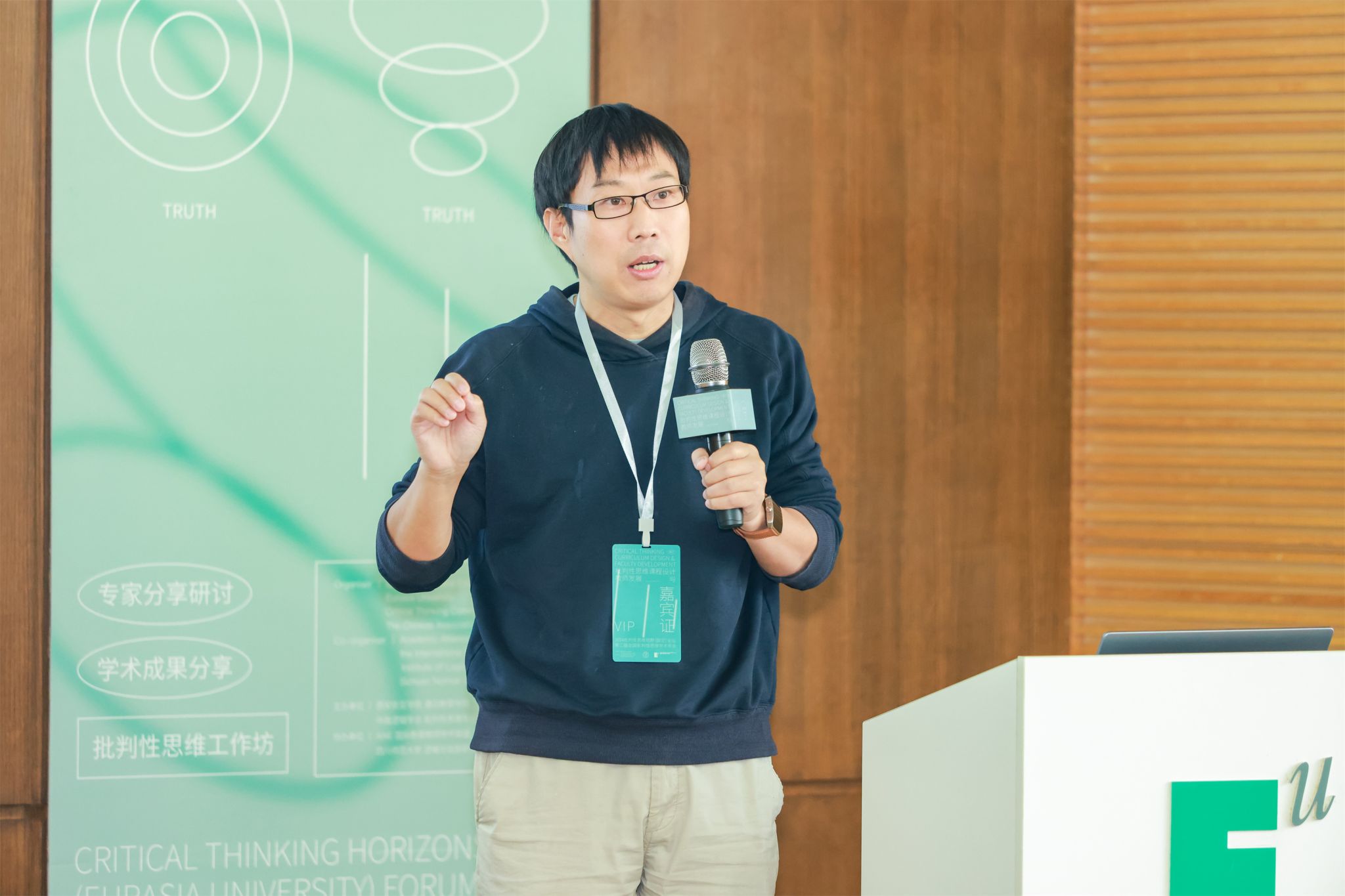 苏德超在分享中阐述了批判性思维在教学与生活中的重要性。批判性思维不仅是情感的唤醒,更是要求个体超越个人情感,以客观、全面的视角审视问题,其核心在于开放性,即接纳并审视多元观点。