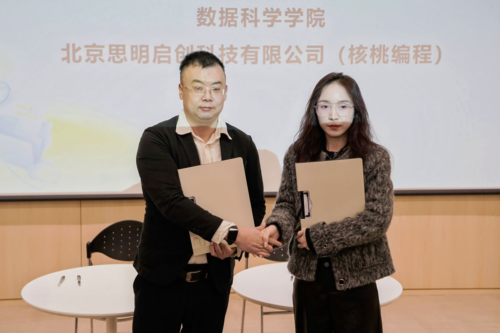 中兴通讯股份有限公司作为全国领先的通信解决方案提供商,未来将在5G技术与数据科学的融合、创新、人才培养、实践基地建设等方面与学院开展深度合作。北京学而思将在教育、数据挖掘、智能教学、系统开发等方面与学院展开合作,探索数据科学学院如何更好地服务于教育创新,提升教育质量。核桃编程将与学院在编程、教育、课程创新、编程人才、数据素养培养等方面深入合作,为培养未来的科技创新人才贡献力量。