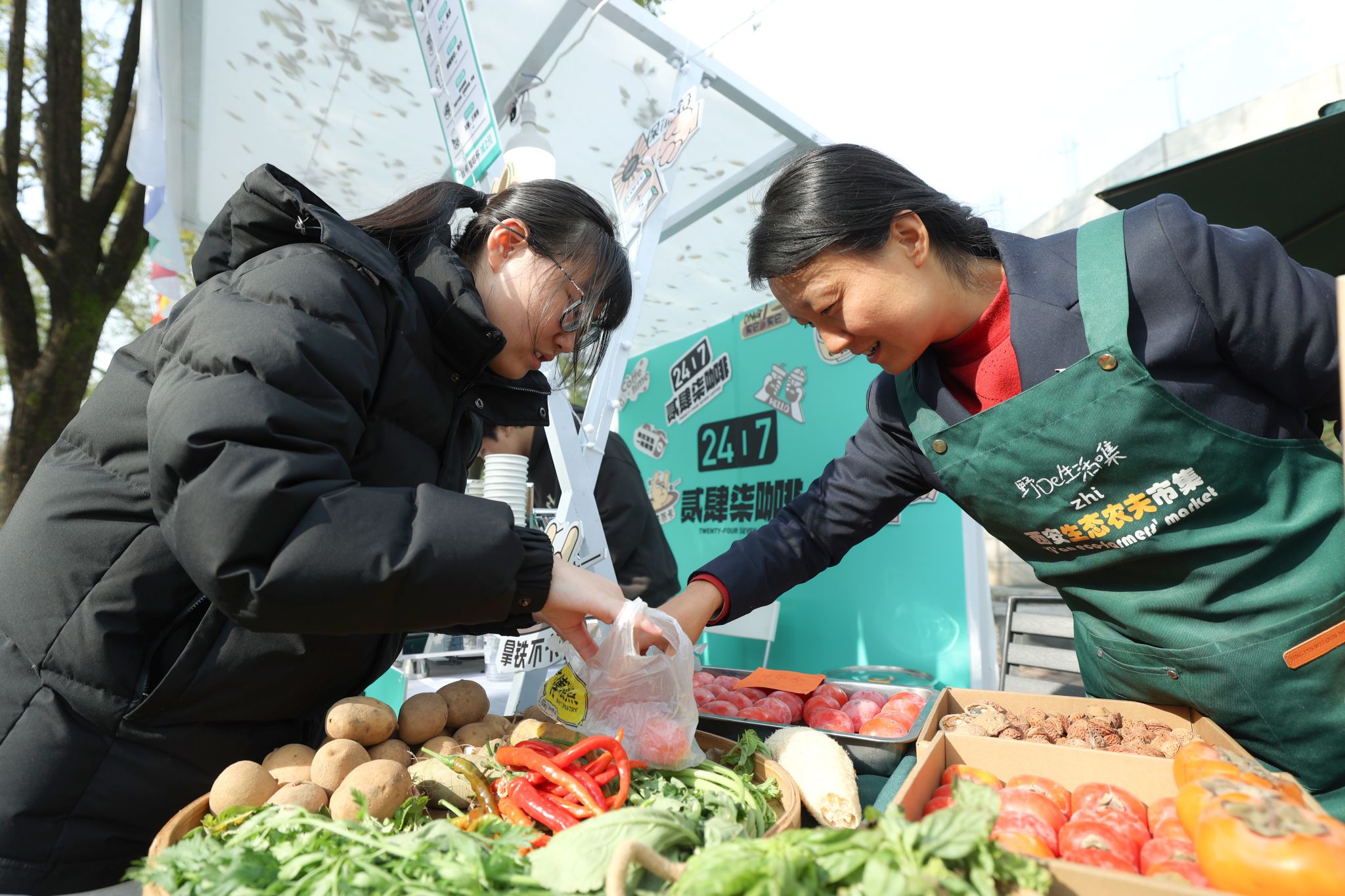 “大黑”(真名刘明春)是西安生态农夫市集的联合发起人,“玄碧”(真名赵国秀)是生态农夫市集的一名志愿者,11月20日的市集现场,他们分享了各自与土地结缘的故事。