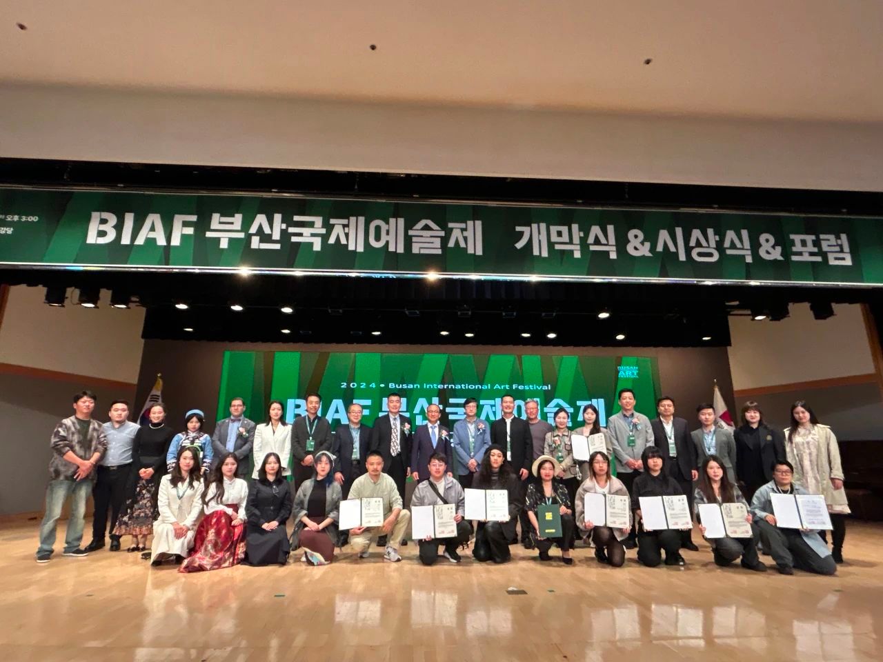 釜山国际艺术节(Busan International Art Festival,简称BIAF),是国际文明互鉴、文化交流的平台和桥梁。2024年10月30日,韩国釜山国际艺术节在釜山广域市厅展厅盛大开幕,主题是“美丽的未来”。在这个充满激情与创意的舞台上,来自全球70个国家的艺术家、创作者及艺术团体齐聚一堂,共有1122件作品脱颖而出。