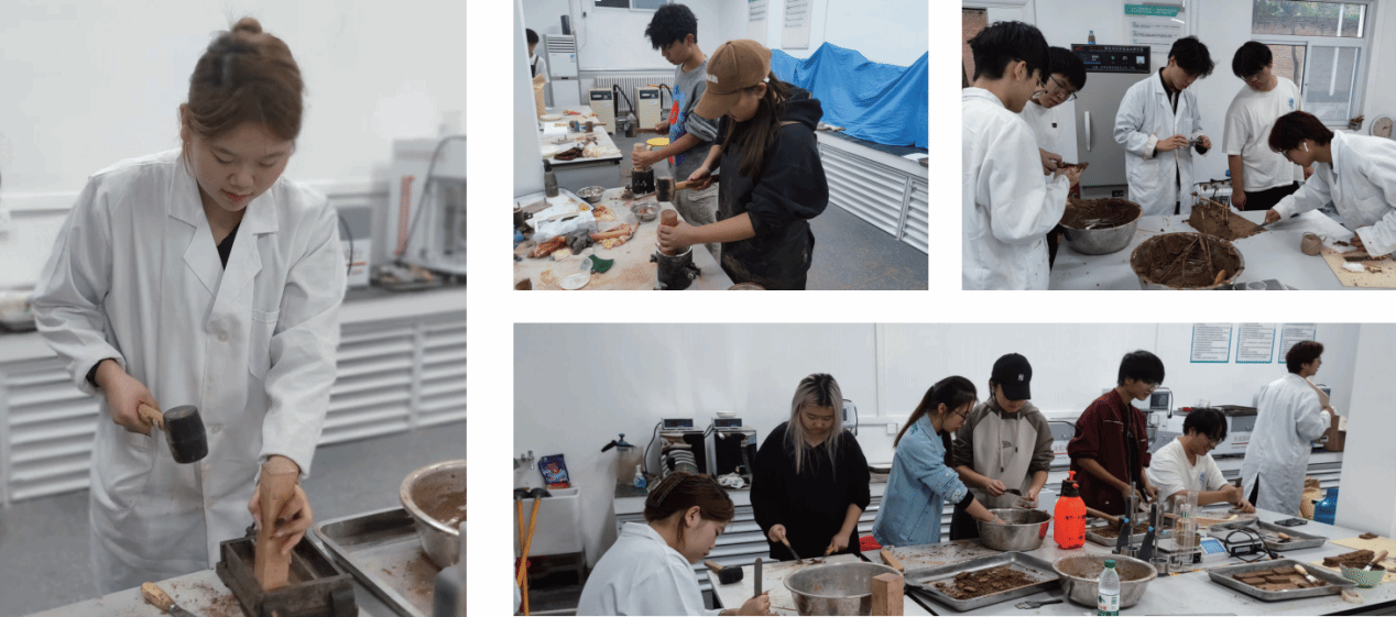 实践项目:每队以“传统工艺模型”/“生土肌理画”/“生土圆柱试件”/“生土马赛克拼贴”/“生土器物”为题,以“生土”为原料,以“夯”为技法,开展建筑实践并按照要求交付作品;