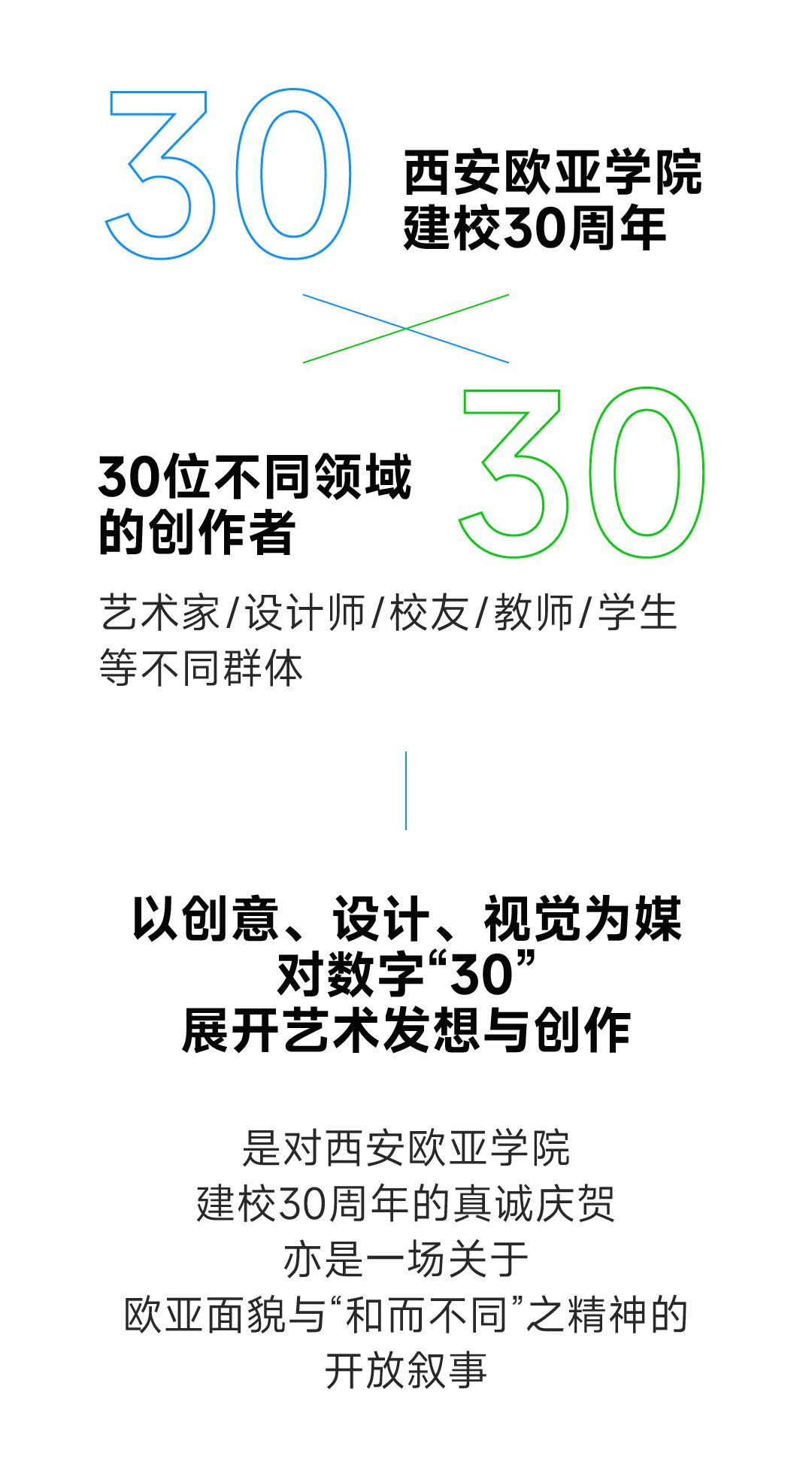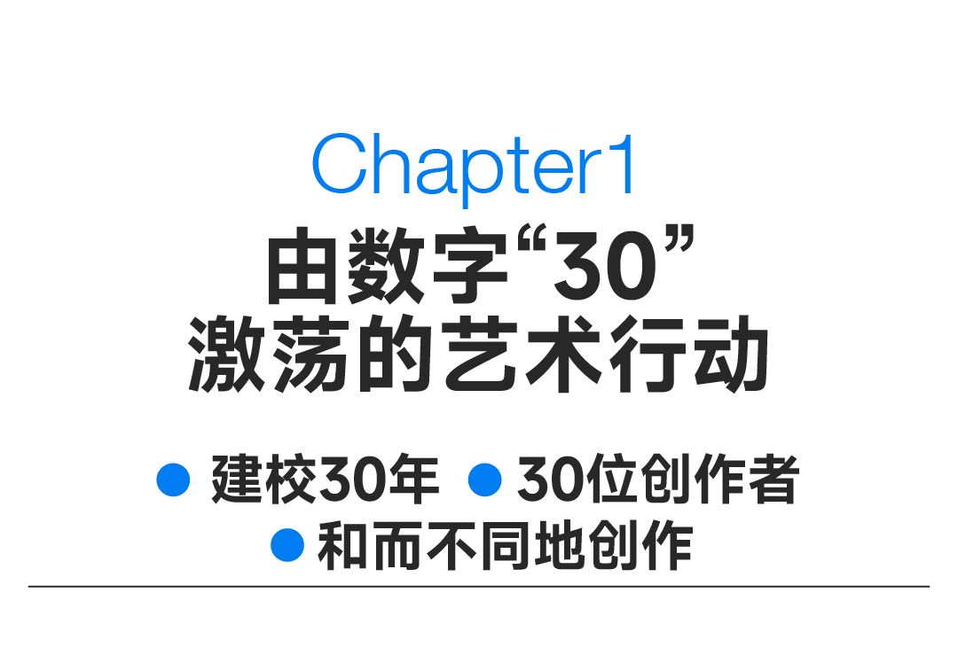 在这些维度的碰撞下、在建校三十周年的重要契机上,KY开元集团官网入口秉持“和而不同”的校训精神,开启“30×30”艺术创作行动,希冀通过联结不同的创意领域、群体与技术,实现对“30”全新的创作,让意义走向公众,完成共同的作品。