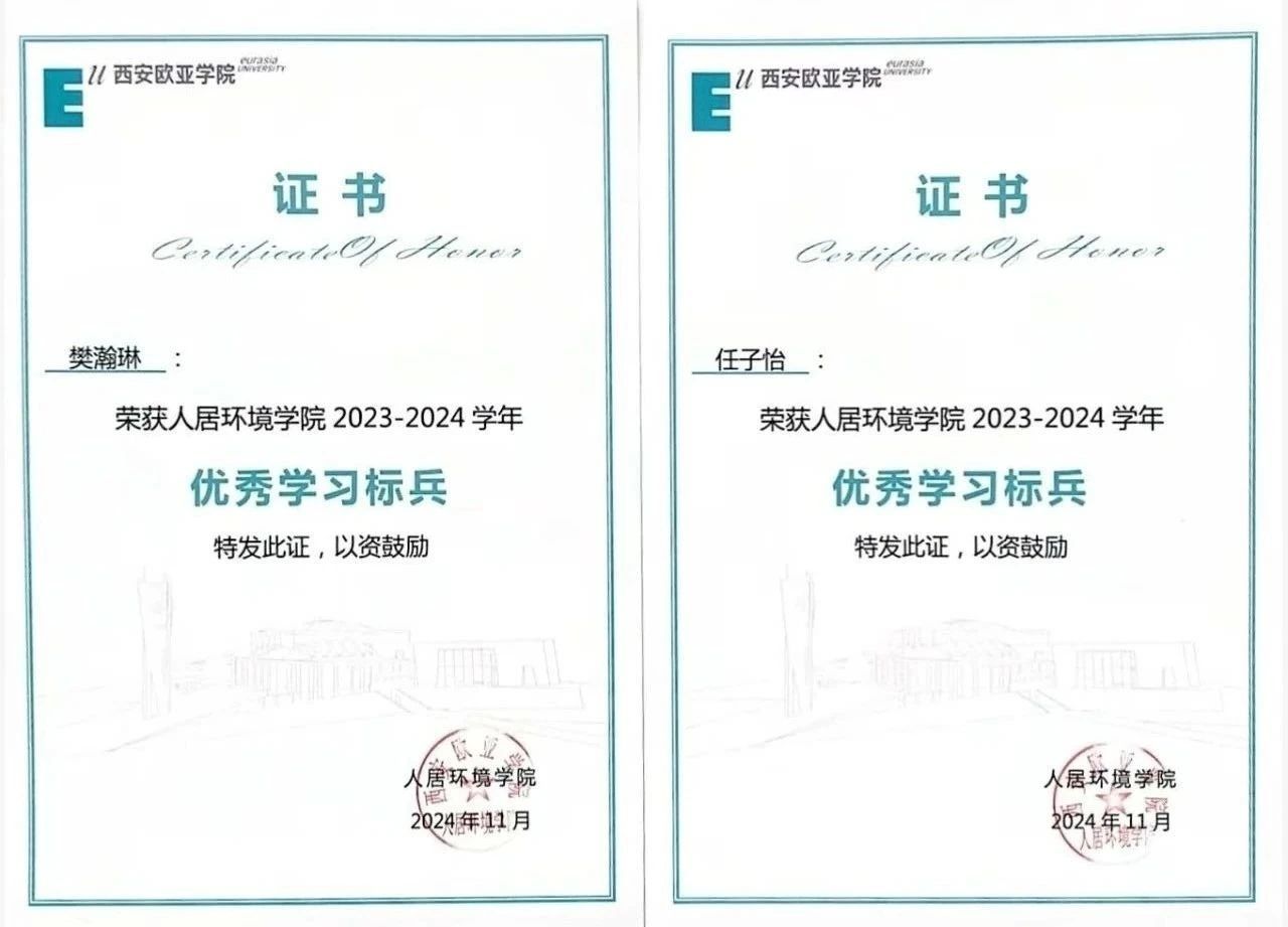在2023-2024年度中,我们获得了“国家励志奖学金”,并在期末时双双以专业第四名与第五名的好成绩同时也获得了学院的“优秀学习标兵”。