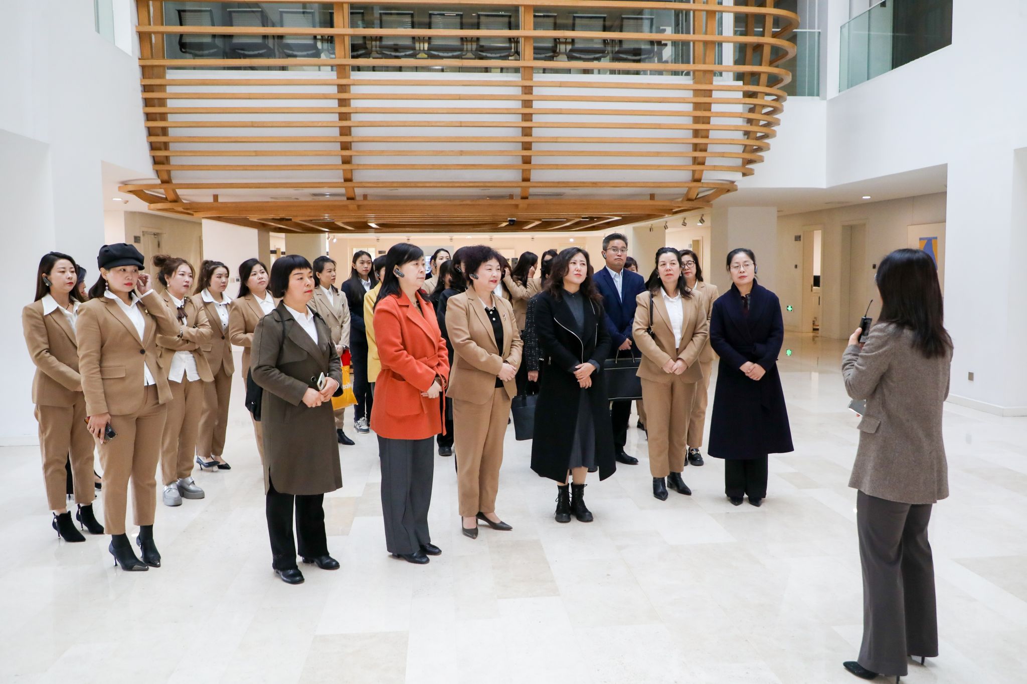 铜川市女企业协会会长胡玉芬代表协会致辞。胡会长说很多年前她来过欧亚,印象当中欧亚还是以前的模样。今天参观和深入了解后发现,欧亚的发展真是令人惊叹,着实打破了她固有对民办高校的认知,欧亚校园环境优美、教育理念先进、师资配备雄厚,处处都给他们留下了美好和深刻的印象。参观途中,很多女企业家们都积极要与欧亚建立合作关系,邀请欧亚的学生到他们的企业去实习就业。