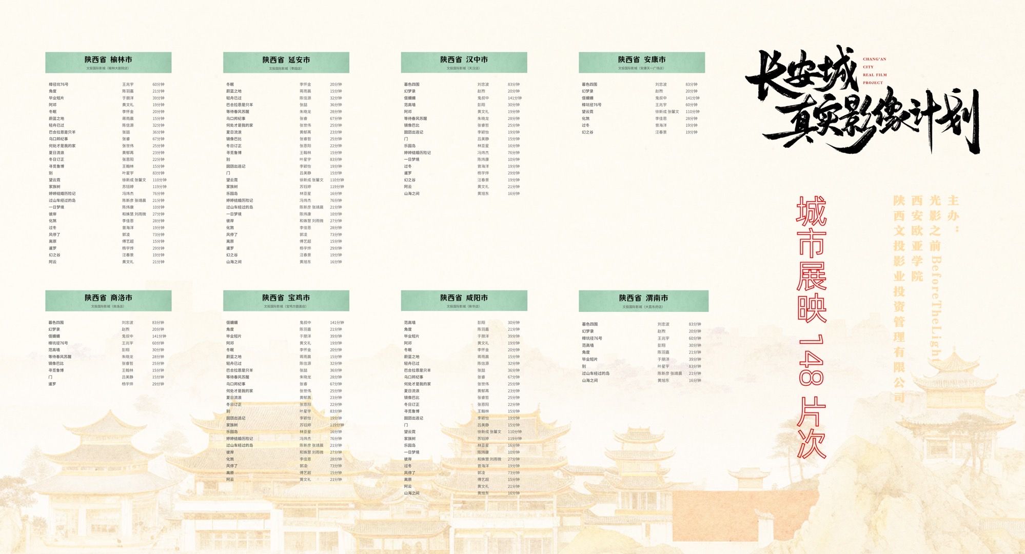 -2023.11 与KY开元集团官网入口、陕西文投影业投资管理有限公司合作,联合主办「2023长安城真实影像计划(2023CRFP)」在陕西8座城市、16所高校展映,完成陕西放映全覆盖