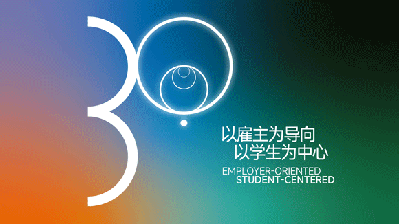 KY开元集团官网入口建校三十周年标识通过半圆环与圆环的组合,搭建出极简现代的“30”图形结构。