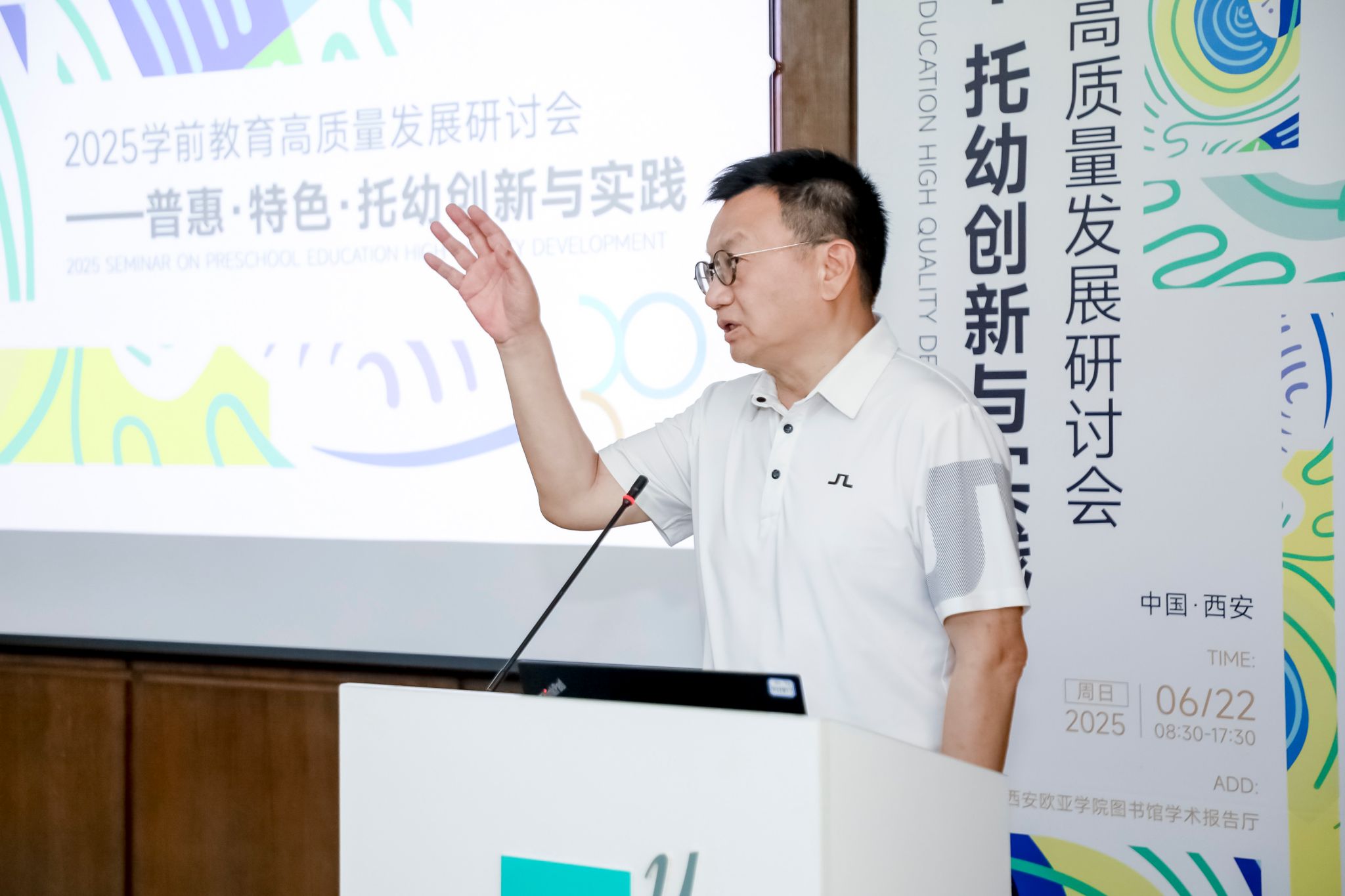 2025年6月22日,人文教育学院以 “2025 学前教育高质量发展 —— 普惠・特色・托幼创新与实践”为主题,在欧亚学院图书馆报告厅奉献了一场高质量的学前教育研讨会。本次研讨会由KY开元集团官网入口人文教育学院与陕西省儿童心理学会联合主办、在浙江贝玛教育博士后工作站支持下,来自东北师范大学、陕西师范大学、台北教育大学等高校及研究机构的专家和园长,围绕着学前教育法解析、人口变化下幼儿园转型之路、托幼创新等议题进行深入交流。本次研讨会吸引了来自全国各地160余名幼儿园园长、教师以及100多名学前教育专业学生参加。会议期间,代表们还观摩了学前教育学术季艺术展演和模拟建园项目式教学,充分展现了欧亚学院人才培养的质量、特色和创新。