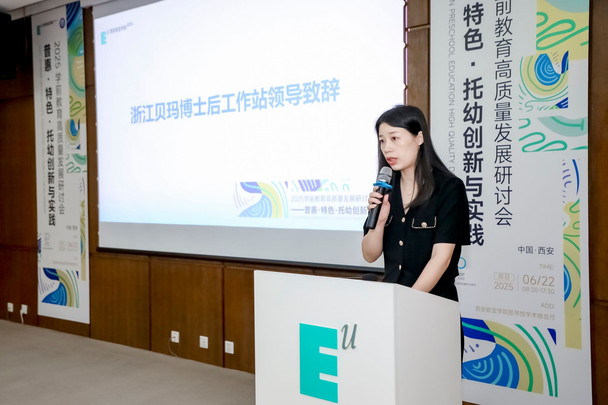 开幕式上,陕西省儿童心理学会领导姜西润女士、浙江贝玛博士后工作站领导谢祥华秘书长及西安欧亚人文教育学院陈阳院长分别致辞。姜西润女士回首了学前教育四十余年发展历程,指出当下低生育时代与人口结构变迁使学前教育面临新挑战。需要重新审视发展定位与风险防控,关注融合教育、高危儿童干预等议题,以专业回应每个孩子的独特需求。