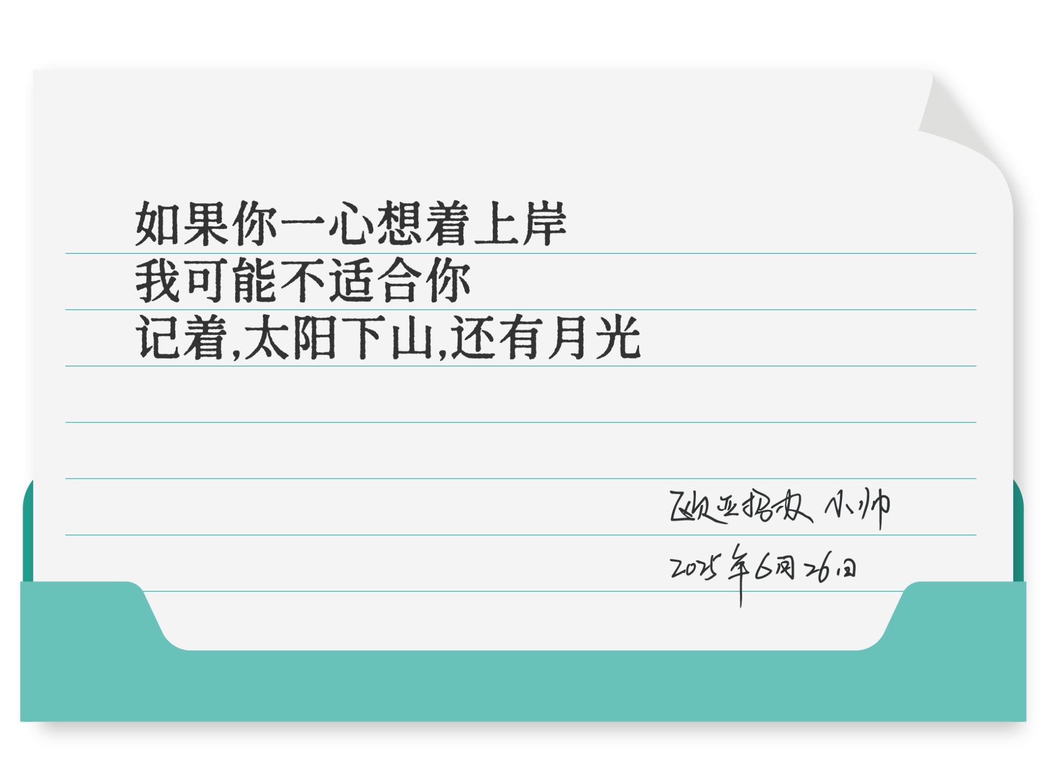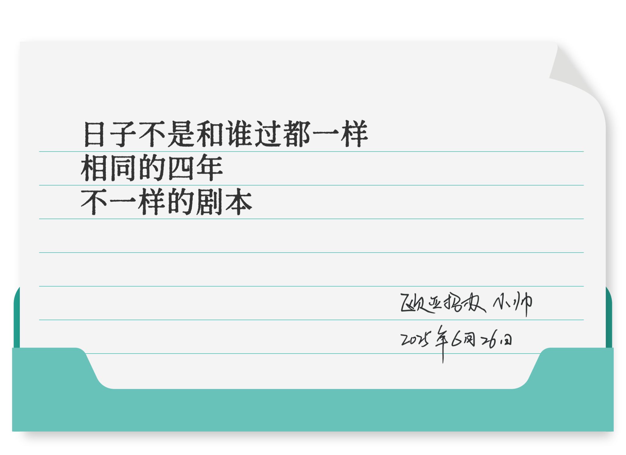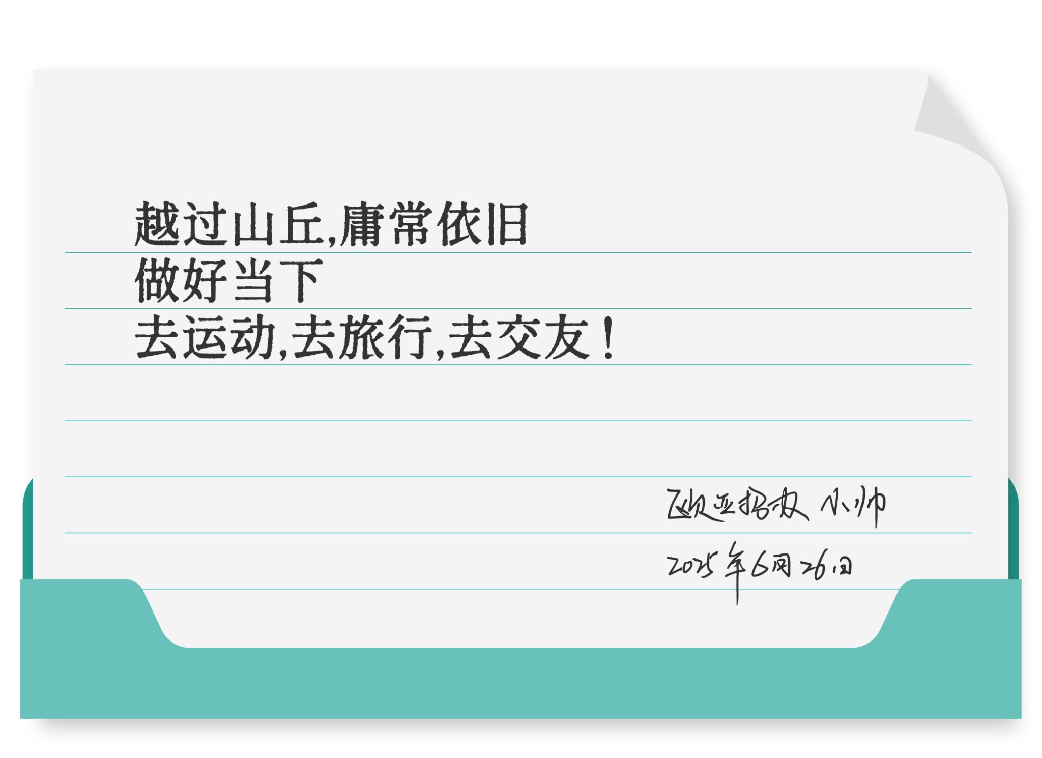 当你翻越高考这座“山丘”后,你会发现生活如常。关注真实的当下、做好学生该做的事,并且记得去奔跑、去远行、去遇见有趣的人。大学不止是一段学业旅程,希望你在这场探索中,成为一名丰盈的社会人。