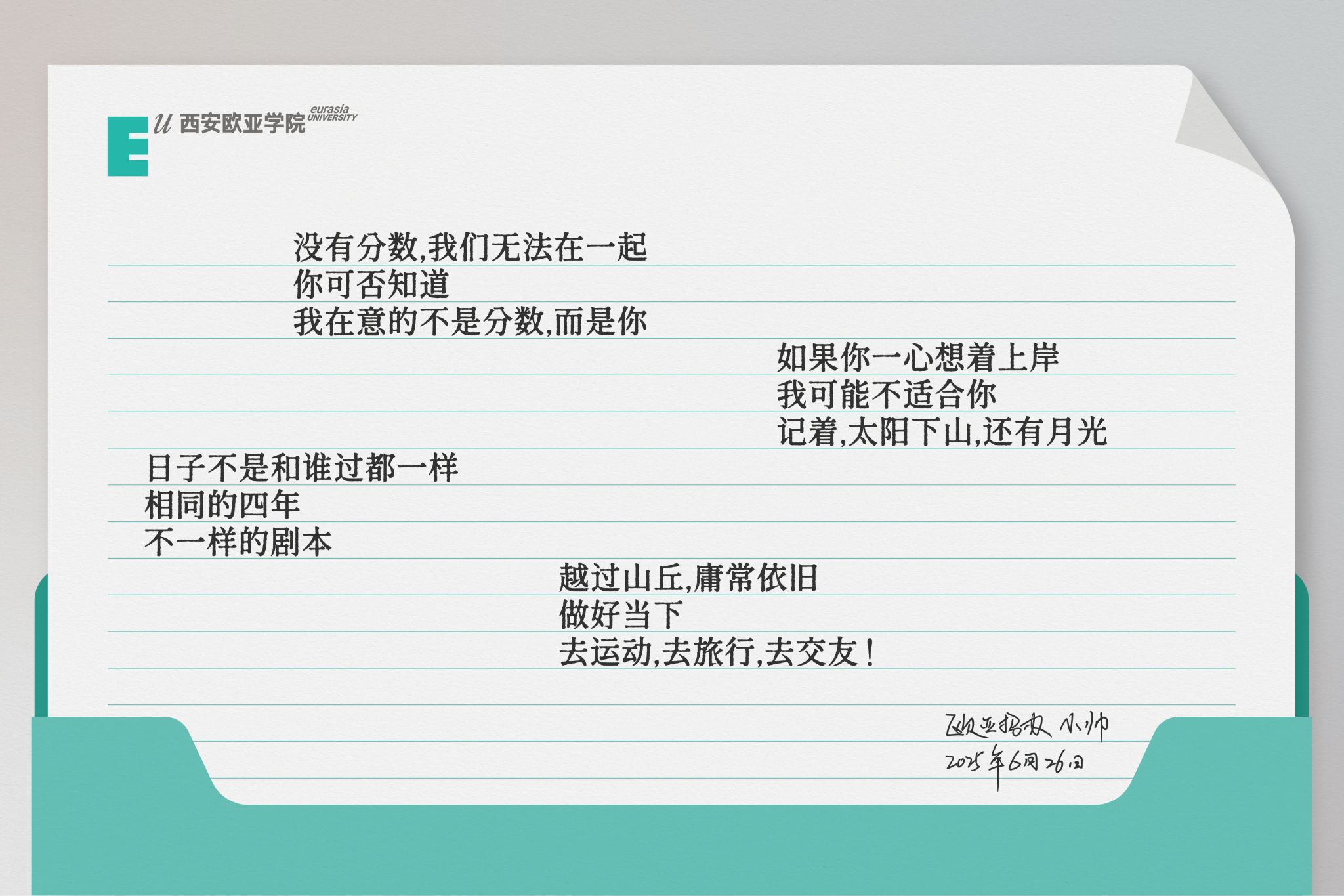 四年的时光,你可以循规蹈矩,也可以因不一样的选择收获精彩。我们相信,教育不是复制答案,而是唤醒可能。我们期待你用四年,在欧亚书写独一无二的成长“剧本”。