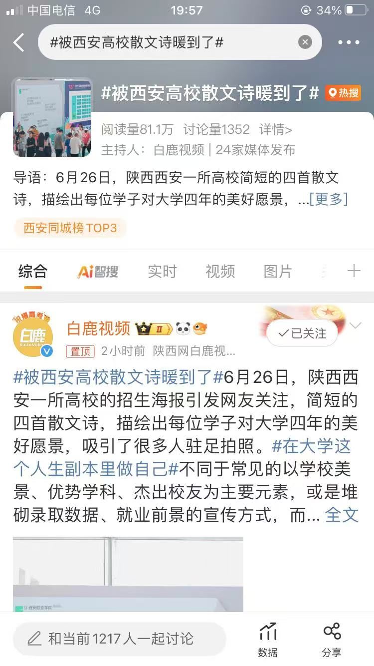 澎湃新闻:今年贵校的招生海报文案令人印象深刻,请问您创作的初衷是什么?想传达给学生和家长怎样的信息?